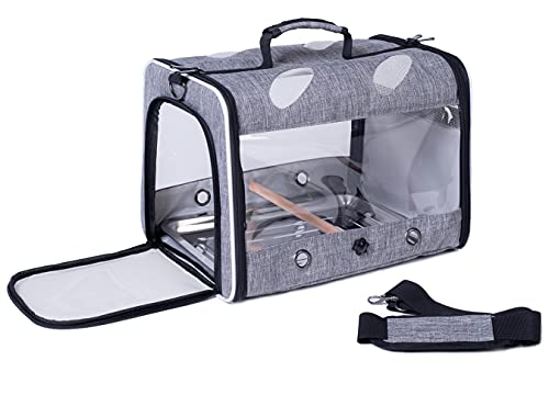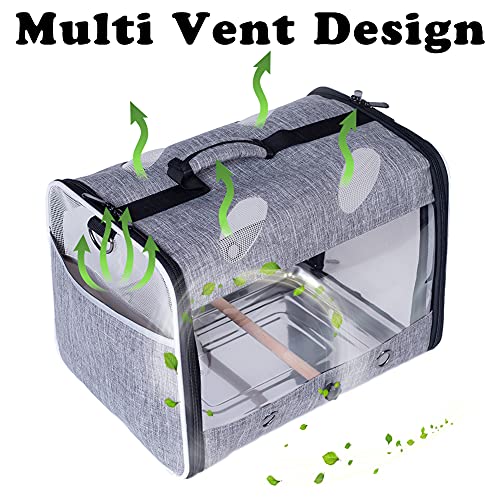 Bird Travel Carrier with Stand Perch, Breathable Bird Carrier Cage Parrot Carrier for Hiking, Airline Approved
