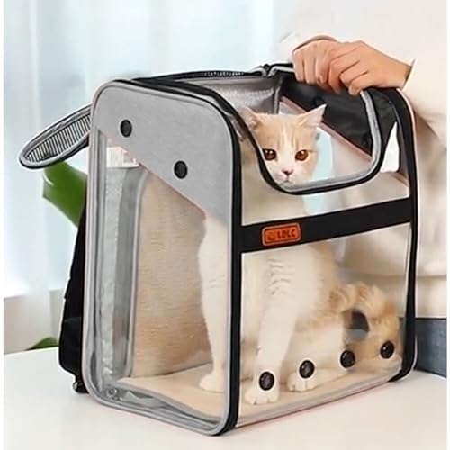 Expandable Pet Backpack Carrier with Storage, Travel and Transportation for Animals up to 22 lbs, Ideal for Cats, Small Dogs, Rabbits, Light Grey