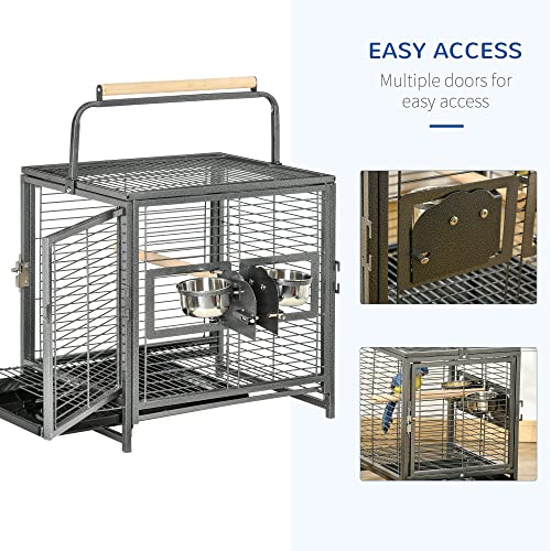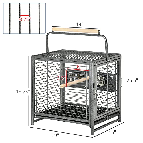 PawHut 19″ Travel Bird Cage Parrot Carrier with Handle Wooden Perch for Cockatiels, Conures, Black