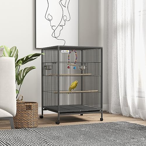 Sturdy Construction: With a robust steel frame, this flight cage provides a durable home for birds to thrive in. Four wheels on the bottom make it easy to move it to where you need it, and two brakes hold it safely in place when you’re there.
