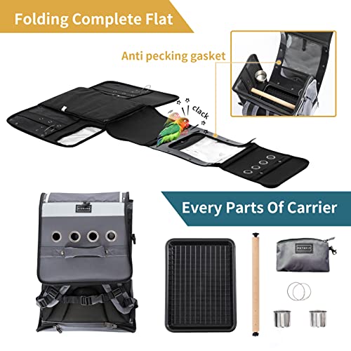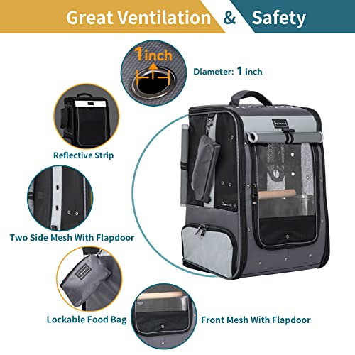 Petsfit Bird Carrier with Shade Cover,Adjustable Height Standing Perch and Great Ventilation, Fit for Medium/Large Sized Birds(Large, Grey1)