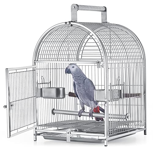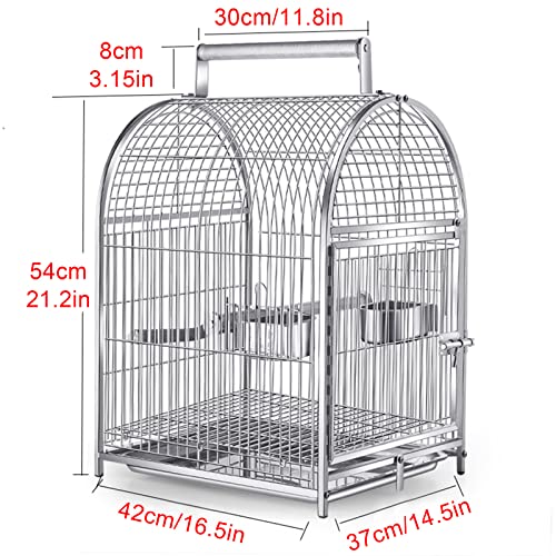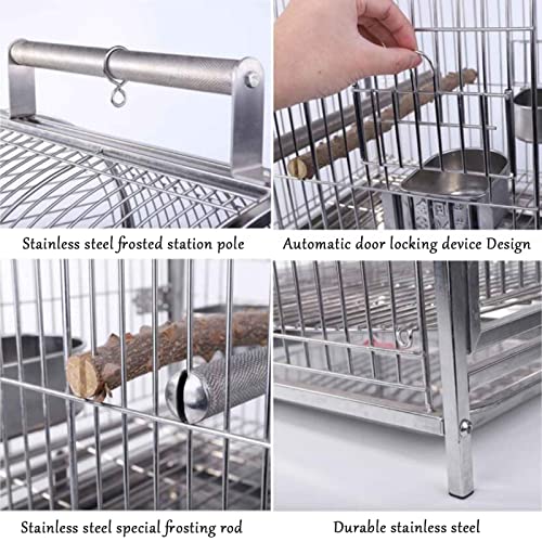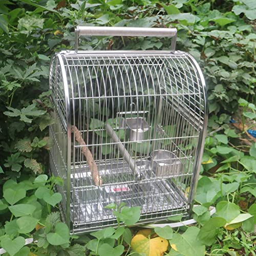 Portable Hanging Parakeet Cage Bird Cage, Stainless Steel Small Travel Bird Cage with Wooden Perch Stainless Steel Dishes,Portable Handle Parrot Cage for Small Birds Carrier