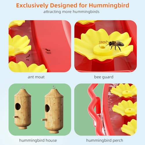 【Exclusively Designed for Hummingbird】This hummingbird feeder camera features a vibrant red and yellow design, thoughtfully designed with two hummingbird houses, an ant moat and small feeding ports, easily attracting more hummingbirds to your screen and elevating your bird-watching experience.