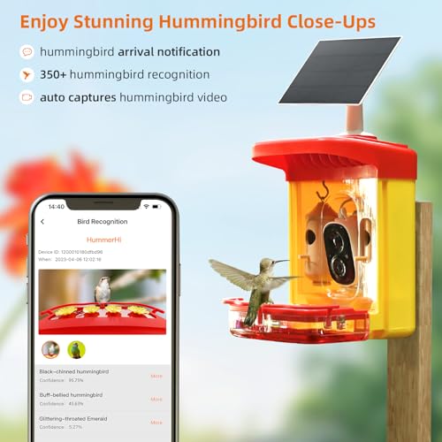 【Lifetime FREE AI Bird Recognition】Through extensive data training, the AI hummingbird feeder is like having a front-row seat to accurately identify the exact hummingbird species visiting your feeder. You can check details of the bird species in Bilantan App, learning something new about hummingbirds every day.