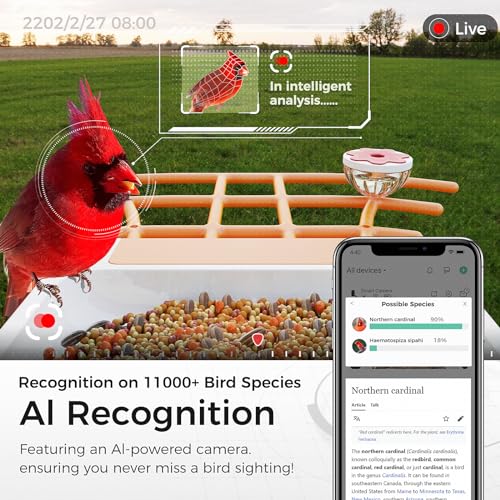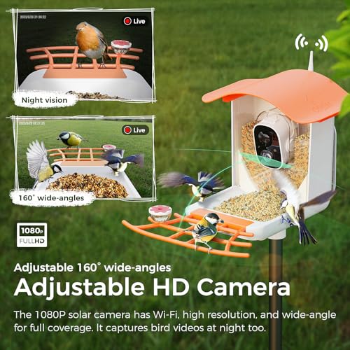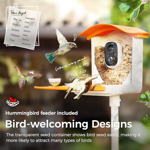 Bird Feeder with Camera, 1080P Smart Bird Feeders Squirrel Proof, AI Recognition Bird House with Solar Panel, IP65 Waterproof, with Hummingbird Feeder, Bird Watching Gift for Bird Lovers