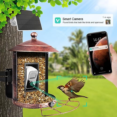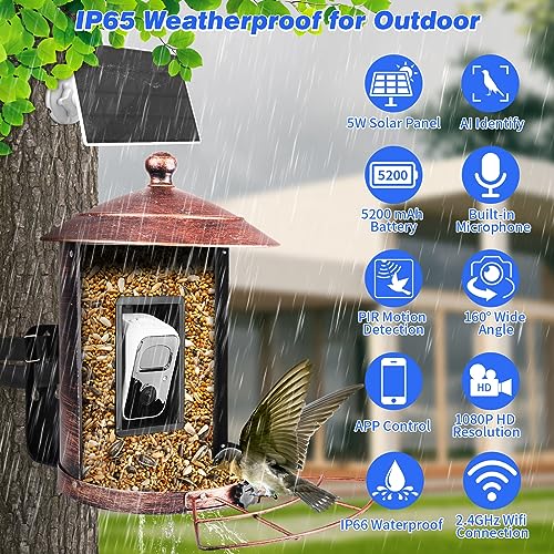 Bird Feeder with Camera Wireless Outdoor, Smart Bird Feeder Solar Powered, AI Identify Bird Watching Camera, 1080P HD Auto Capture Bird Videos