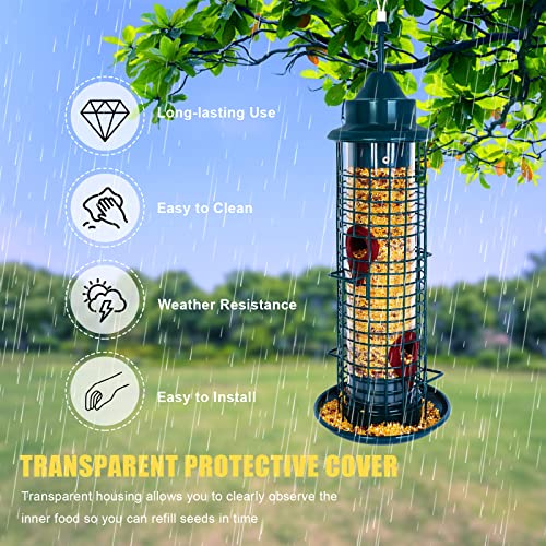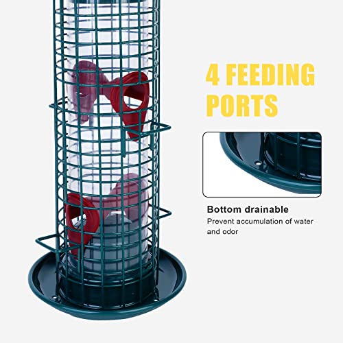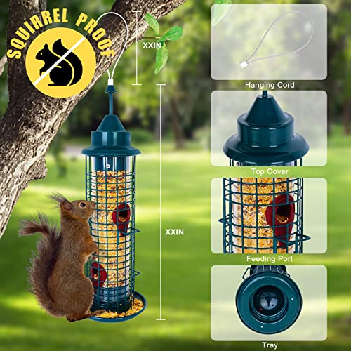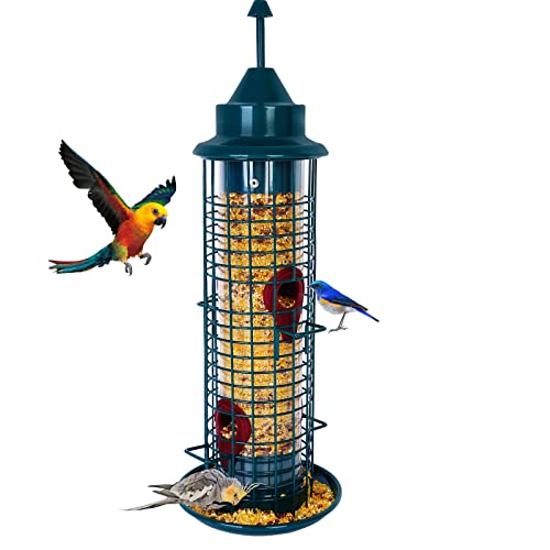 Bird Feeders ,4 feeding ports,squirrel proof bird feeders for outside hanging, Outdoor Birds Feeders Wild Bird Seed, Garden Yard Ornamental Bird Feeder (Dark green)