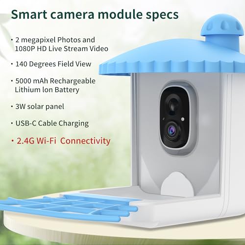 Smart Bird Feeder with Camera Solar Powered, 1080P HD AI Identify Wild Bird Feeder Camera