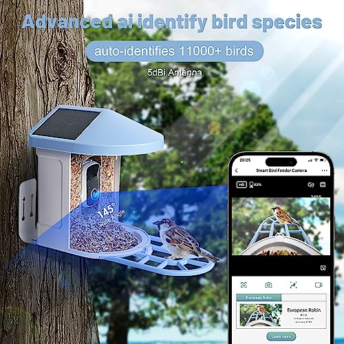 Smart Bird Feeder with Camera,Bird House Camera with AI Identify Bird Species,1080P HD Bird Watching Camera Auto Capture Bird Videos & Solar Panel,Free 64GB SD Card,Ideal Gift for Bird Lovers