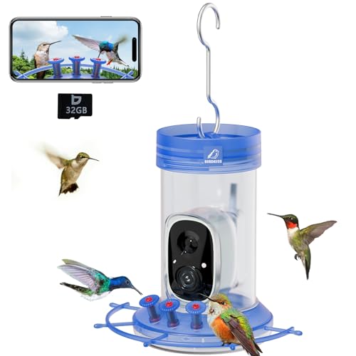 Smart Hummingbird Feeder with Camera: Ant and Bee Proof Hummingbird Feeders – 32 Ounce Capacity Motion Activated & Auto Capture HD Bird Video – Gifts for Women…