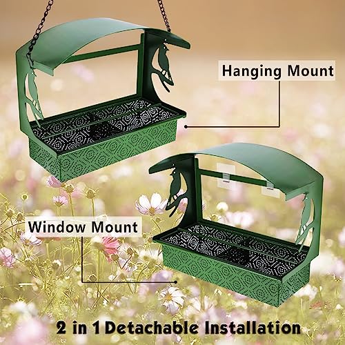 Window Bird Feeder, Durable Metal Window Bird Feeders, 2 in 1 Wild Bird Feeder for Outdoors Hanging, Large Capacity, Weatherproof, Garden Backyard Decoration, Gifts for Bird Lovers Christmas