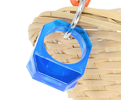 Hanging from the (3) sturdy metal rings are translucent colorful super bird enticing acrylic rings.