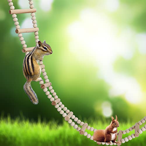 🦜【Easy to Install】: The total length of this ladder is about 45.3 inches, the total is about 0.45 pounds, and there are two metal buckles at both ends, which can be easily and safely installed anywhere. Our small animal bending bridge is not only suitable for all kinds of small animal cages but also suitable for hanging in the garden woods for birds, squirrels, and other small animals to play and stand.