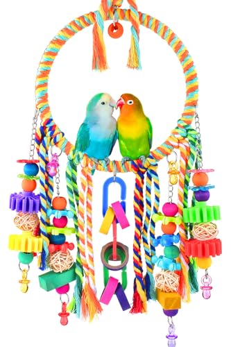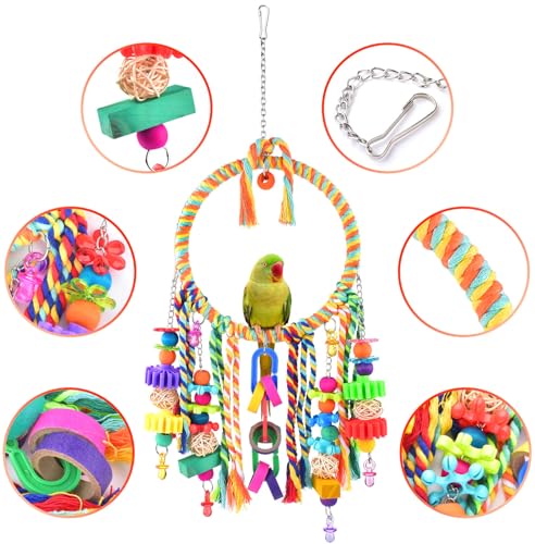 KATUMO Bird Toys, Bird Swing Toy Bird Perch with Colorful Chewing Toys, Suitable for Lovebirds, Finches, Parakeets, Budgerigars, Conure ect Small Birds