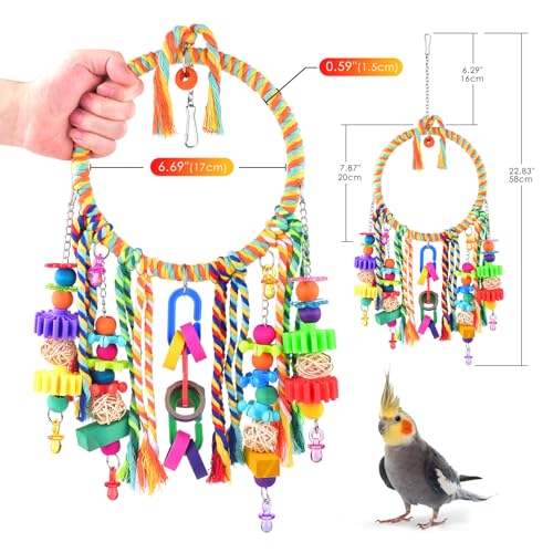 ENRICHMENT BENEFITS: This conure toy is designed to not only grind birdies’ beaks but also exercise their claws and muscle. Many parrots enjoy the physical activities of hanging, swinging and spinning the toys by sitting on the top of the swing ring, even flapping wings to make it spin in circles.