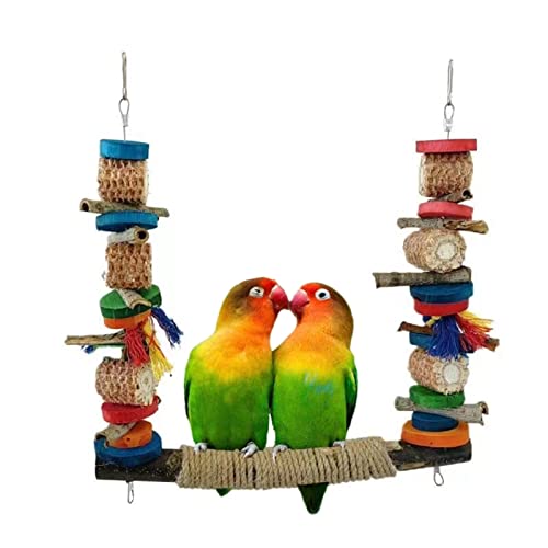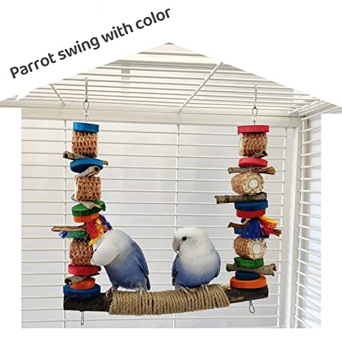 【Natural and Safe】Conure swing use only natural apple wood and corn cob, dyed with edible pigments, ensuring the safety and health of your beloved pets. Handmade and durable, these swing toys are perfect for birds to climb and explore.