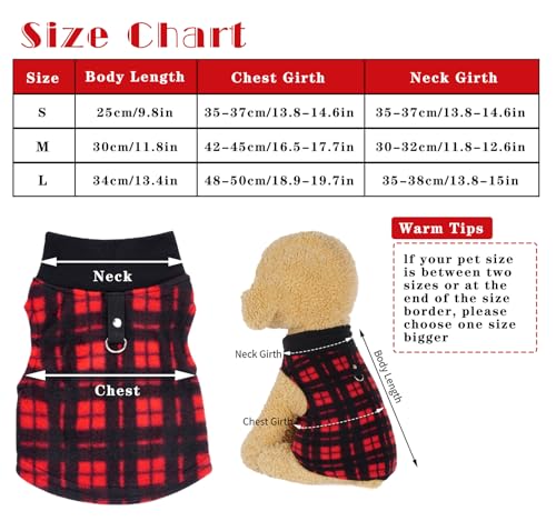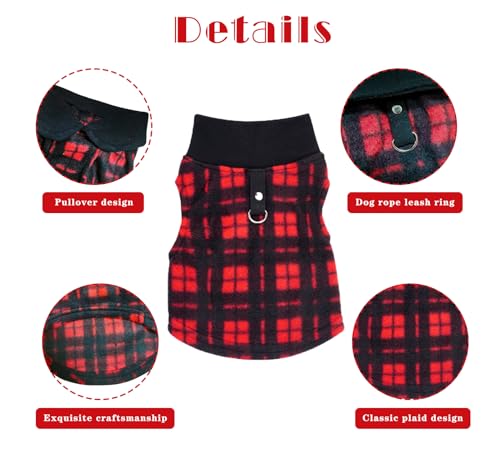 1 Pieces Buffalo Plaid Dog Sweaters with Leash Ring Dog Fleece Vest Dog Pullover Jacket Warm Pet Dog Clothes Winter Dog Outfits for Puppy Small Dogs Cat Pets (Red, S)