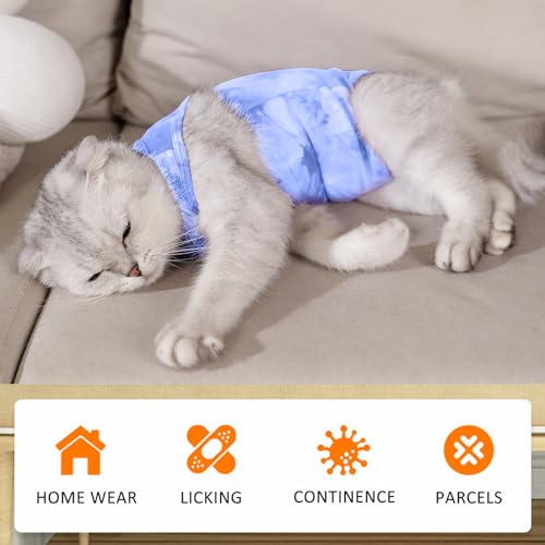 Cat Recovery Suit,Cat Surgery Recovery Suit Female, Kitten Cat Onesie for Cats After Surgery Female Spay Surgical Post-Surgery Abdominal Wound Skin Diseases Protection(Blue-S)