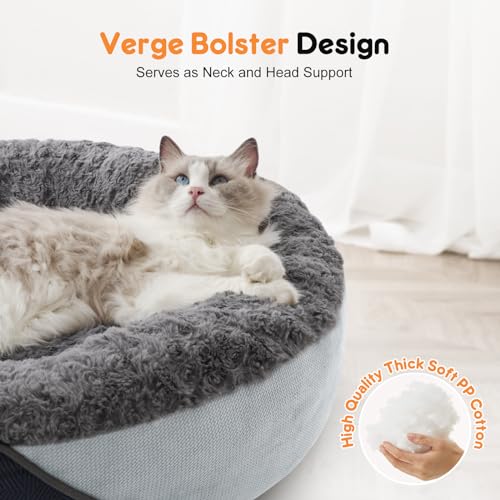 【PET FRIENDLY】This pet bed has a round shape that provides perfect support for your pet’s head and neck, making it ideal for curling up. The non-slip and waterproof bottom provides better stability, ensuring your pet stays safe and comfortable.
