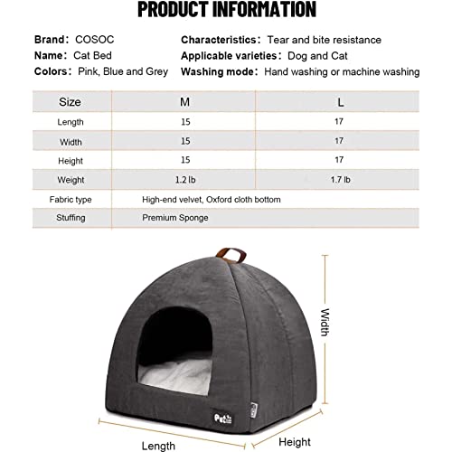 Cat Bed for Indoor Cats -Premium Pet Beds for Cats and Small Dogs, Cat Bed Cave, Comfortable Covered Cat Bed, Cat Tent, Kitten Bed, Small Animal Bed and Cat Hut with Cushioned Pillow (Medium, Grey)