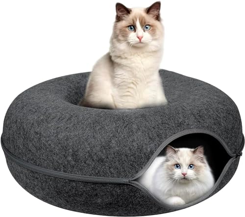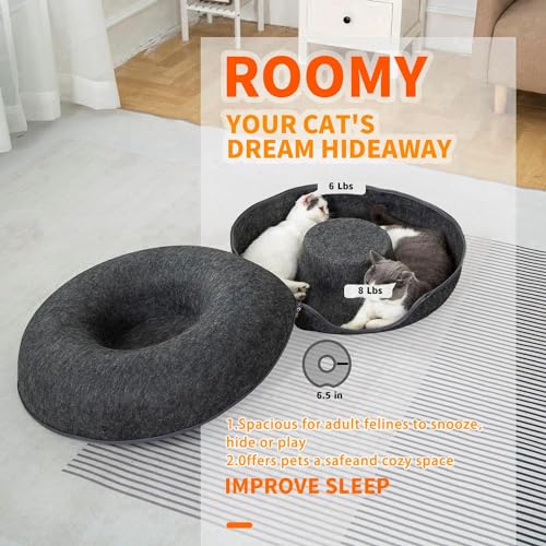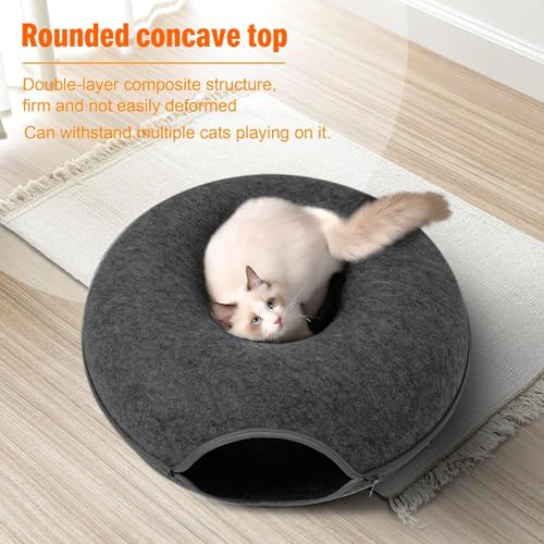 Cat Tunnel Bed, Peekaboo Cat Cave, Cat Tunnels for Indoor Cats, Donut Cat Bed, Universal for All Seasons Cat Condo and Cat Cave (20 in * 20 in * 8 in, Dark Grey), Good for Kittens Under 8 Ibs
