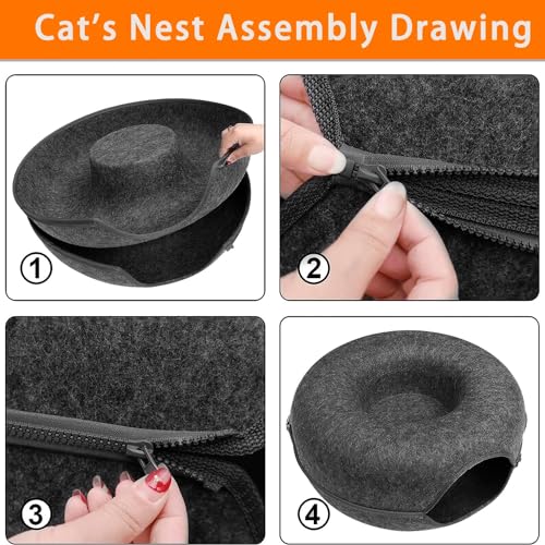 UPGRADED ZIPPER DESIGN: You only need to open the zipper to turn the nest into two nests. Disassembly and cleaning are very simple. use carpet cleaner and it can be surface cleaned. When you need to wash the cat cave, the washing directions are: don’t machine wash, and dry it in the dryer with low fire after washing.