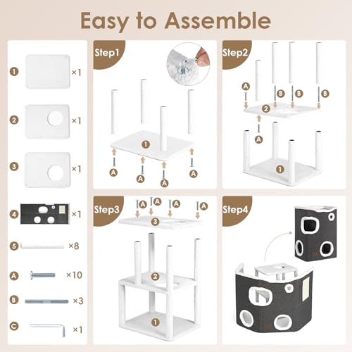 Easy to Assemble – This cat condo for indoor cats can be quickly assembled or folded flat for easy storage and travel. Portable and lightweight.
