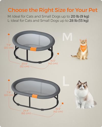 Feandrea Cat Bed, Cat Perch, Breathable Small Dog Bed with Removable Washable Mesh, for Sleeping Pets up to 20 lb, Free-Standing Elevated Pet Hammock Bed Couch for Indoors, Outdoors, Oval, Gray
