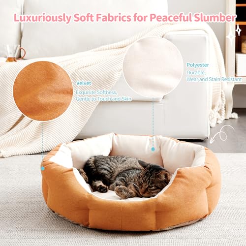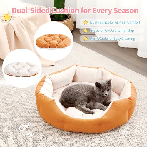 Made4Pets Cat Beds for Indoor Cats – Dog Beds for Small Dogs, Round Pet Bed for Puppy and Kitten, Washable Dog Bed with Anti-Slip Bottom, Removable Dual-Fabric Cushion for All Season, Orange