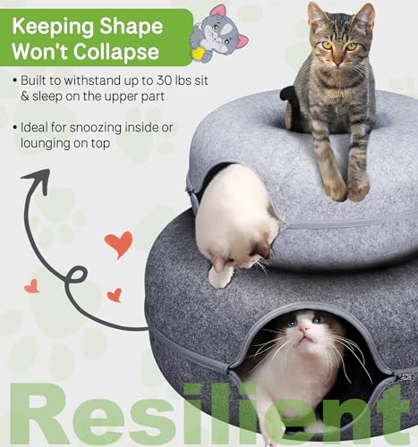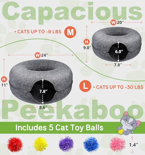 MAMI&BABI Peekaboo Cat Cave for Indoor Cats, Cat Donut Cat Tunnel Bed, Scratch Resistant Cat Toys for Medium Large Cats up to 30 lbs