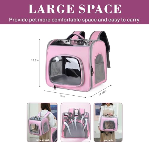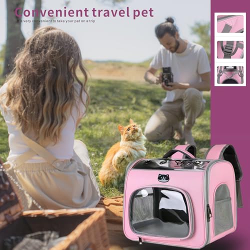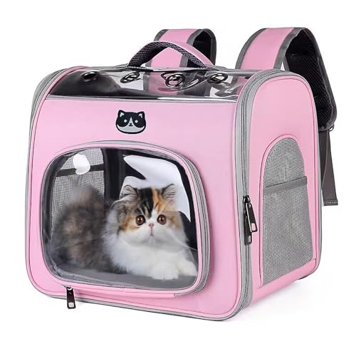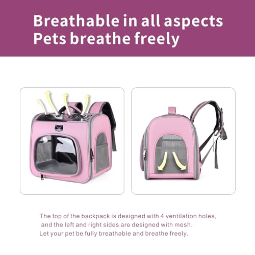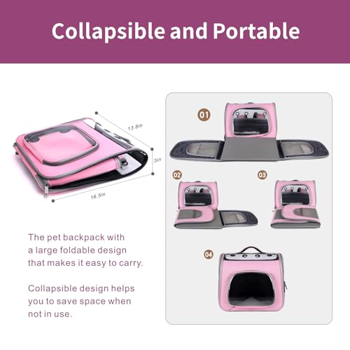 Cat Carrier, Pet Backpack for Small Dog, Portable Pet Travel Carrier, Transparent & Foldable Design, Airline Approved, Ideal for Traveling/Hiking (Pink)