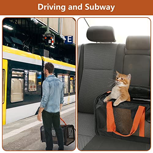 【SAFETY PET TRAVEL CARRIER】: Our soft sided cat carrier for big cats will not let your pet escape by itself, and the non-slip zipper will not open by itself. This pet carrier for cat can perfectly solve your travel problems, including on the subway. The cat carrier bag has two entrances, which are convenient for pets to enter and exit, and the mesh structure next to it can bring sufficient airflow