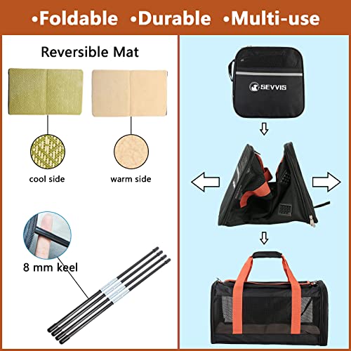 【LARGE CAT CARRIER】: Soft cat carrier is suitable for medium-sized cats, large cats, small dogs, etc.The size is about 20.8*13.2*13.2in.After folding, soft collapsible cat carrier bag size is 13.2*13.2*2.5.The maximum allowable weight is approximately 25 lbs.At the same time, this soft pet carrier for dogs can carry 2-3 small cats.The Soft-sided mesh pet travel carrier bag comes with a detachable cushion, one side is cold and the other side is fluff