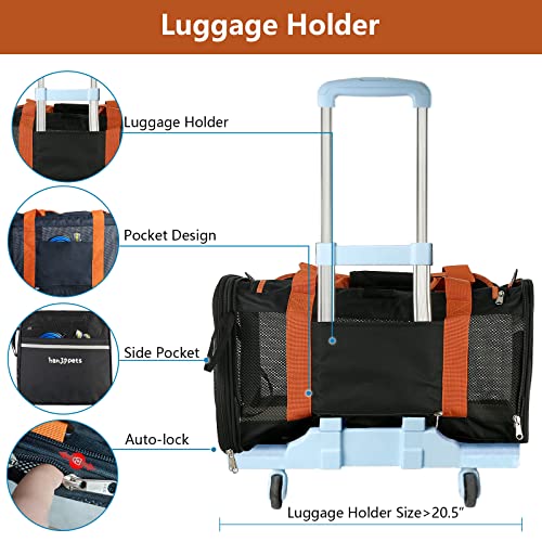 This cat airline carrier with a top entrances which make it possible for your pet to stick his head out, cat pet carrier with top pad could be rolled up for convenience Side pocket can store some dog snacks,
