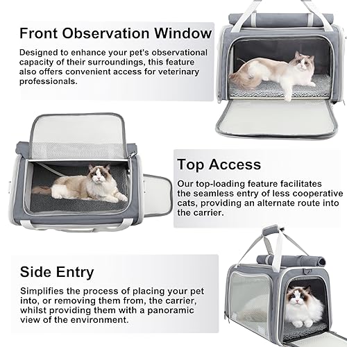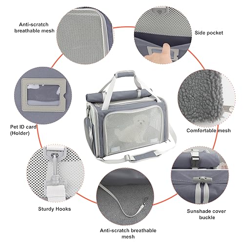 Texsens Cat-Carrier-Large-Pet-Carrier, Soft Cat Carrier for 2 Cats, Pet Carrier for Cat, Collapsible Cat Bag for Home Outdoor Travel, Airline Approved, Privacy Protection (Grey)