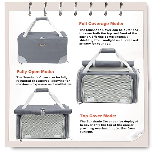 🐱【Protect Your Pet Privacy】We’ve added a large sunshade cover to this cat bag, which is ideally suited to gradually introduce your cat to outdoor travel. When your small shy cat ventures out for the first time (such as car rides or flights, which can be stressful), you can use the full-coverage mode to make them feel safer. As your cat gradually becomes accustomed to these new experiences, the cover of cat travel carrier can be adjusted to either top-cover mode or fully open mode.