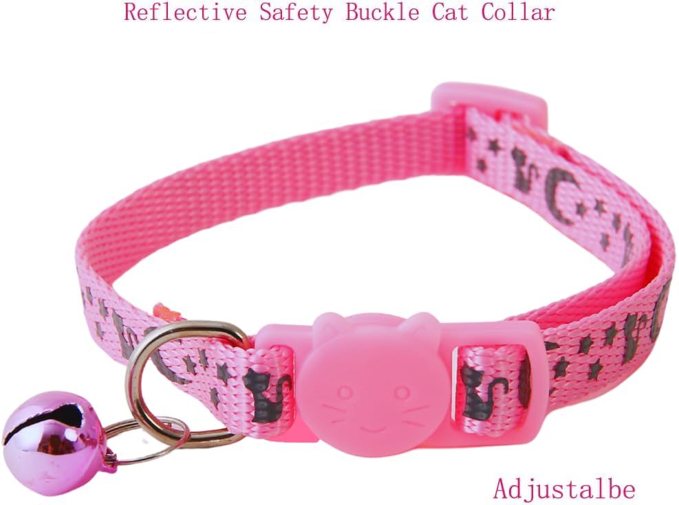 Print Star & Kitten & Moon Cat Collar Breakaway – Package: 3 Pack Blue & Orange & Pink Cat collars – Print Star & Kitten & Moon Kitten Collar with Bells Adjustable, made of durable nylon fabric can stand up to daily use.