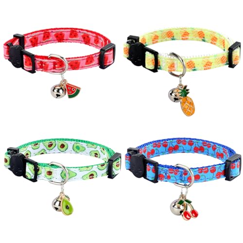 Breakaway Cat Collar with Bell, 4 Pack Safety Adjustable Cat Collars Set…