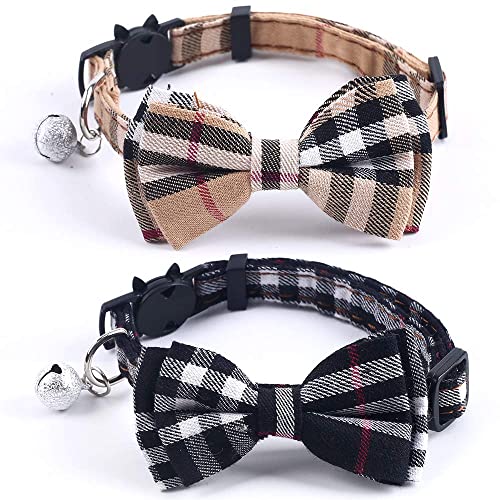 Cat Collars Breakaway with Cute Bow Bell – 2 Pack Kitten Collar Plaid Cat Collar with Removable Bowtie Cat Collar for Cats Kittens