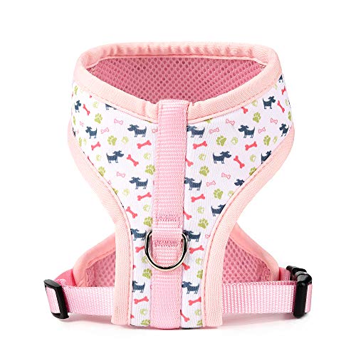 Mile High Life | Dog Cat Vest Harness | No Choke Pull | Easy Step-in | Breathable Soft Mesh Padding | Puppy Training Halter | Pink Bone | Large Girth (21.6″-43.2″
