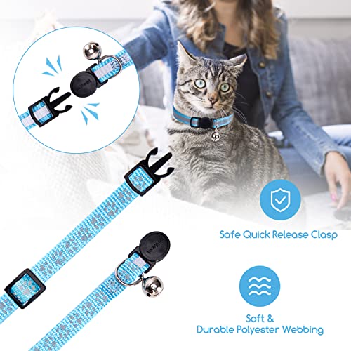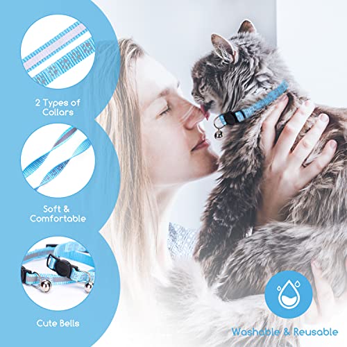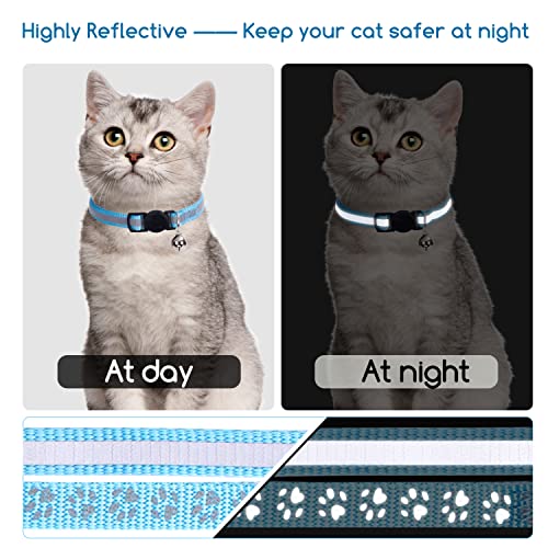 Nobleza Kitten Collar with Bell, 2 Pack Breakaway Cat Collars with Safe Quick Release Buckle, Paw Print & Strip Reflective Adjustable Soft Pet Collar for Small Medium Kitty Cats
