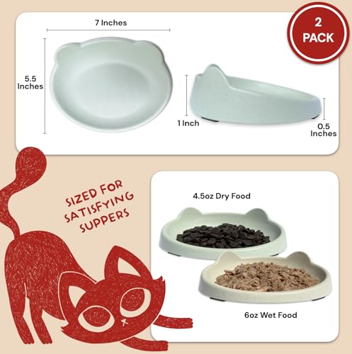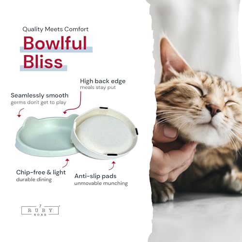 7 Ruby Road Anti Whisker Fatigue Cat Bowl, Set of 2 – Wide Cat Food Bowls, Wet and Dry Shallow Cat Food Dish, Small Cat Dishes for Indoor Cats, Cute Kitten Bowls Whisker Friendly & Relief, Non-Slip