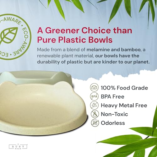 ECO-CONSCIOUS & DURABLE – Made from 50% bamboo and 50% melamine, our pet dishes for cats are a lightweight, portable, and unbreakable substitute for ceramic, promoting reduced plastic use than other plastic cat bowls.