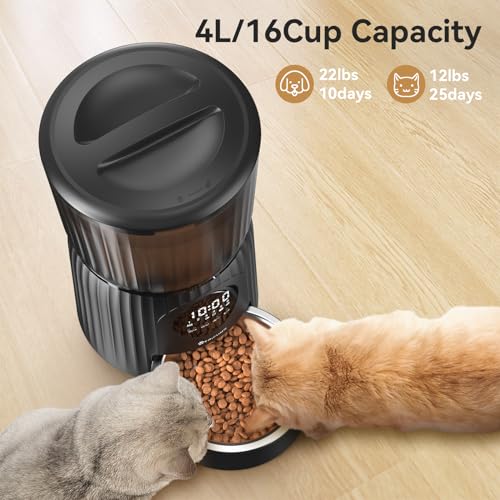 Automatic Cat Feeder, 4L Cat Food Dispenser Programmable Control 1-6 Meals, Auto Dog Feeder with Dual Power Supply, Timed Pet Feeder for Cats and Dogs with Dry Food Dispenser, Desiccant Bag