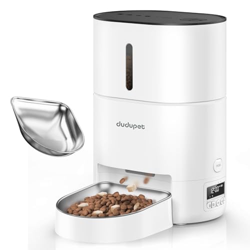Automatic Cat Feeder – A4 Automatic Cat Food Dispenser Battery-Operated with 180-Day Battery Life, 6 Meals 120 Portions Per Day, 10S Dining Voice Record, White