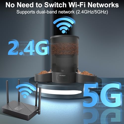 SURDY Automatic Cat Feeder for 2 Cats, 5G WiFi Smart Pet Feeder with APP Control for Remote Feeding, 3L Timed Pet Feeder Programmable 1-10 Meals, Dual Power Supply, Desiccant Bag, 10s Meal Call