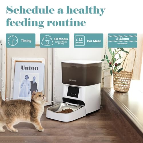 Automatic Cat Feeder, WHDPETS 4L WiFi Automatic Cat Food Dispenser with App Control Elevated Dog Feeder with Stainless Steel Bowl, Silicone Dog Bowl, Feeding Mat, 10s Voice Recorder(2.4G WiFi Only)