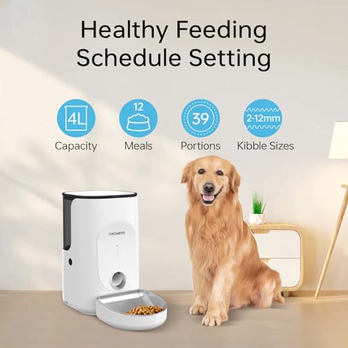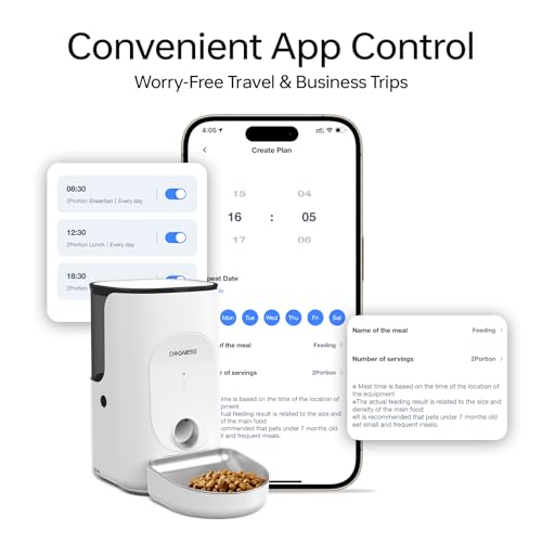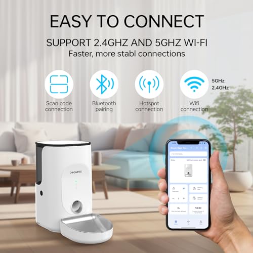 【Easy Customized Feeding Plan with APP】This automatic dog feeder wifi supports both 2.4GHz and 5G Wifi, making it more compatible and providing a stable connection compared to similar feeders that only support 2.4G Wifi. After connected , You can give extra snacks to your cats and dogs from anywhere and at any time, as well as set flexible feeding plans. It allows for up to 12 meals daily with 1-39 portions (1/10 cup per portion).
