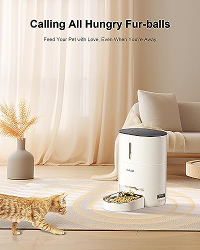 Automatic Cat Food Dispenser, 4L Timed Automatic Cat Feeders Battery-Operated with 180-Day Battery Life, Up to 6 Meals 120 Portions Per Day, 10S Voice Record, Stainless Steel Bowl