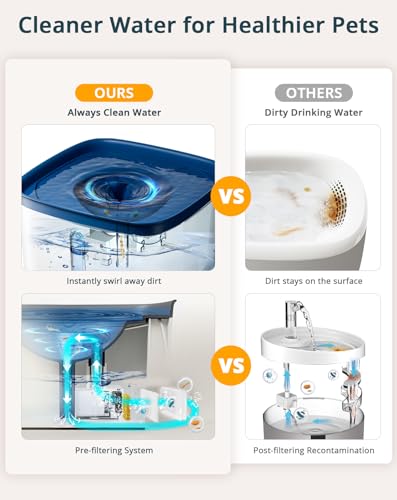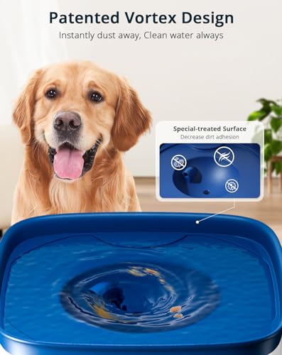 Vortex-Style for Instant Clean: Featuring a unique vortex-style water tray design with a specially treated surface, the dog water bowl dispenser effectively removes pet hair and food residue, reducing mineral buildup for cleaner water. The swirling motion and visual appeal of water can be captivating for cats.